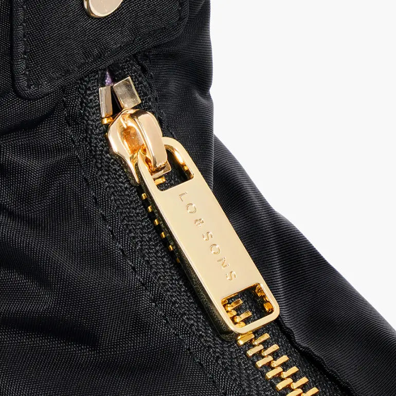 Our signature fine weave premium nylon is water-resistant, lightweight, and durable. Think Prada nylon!