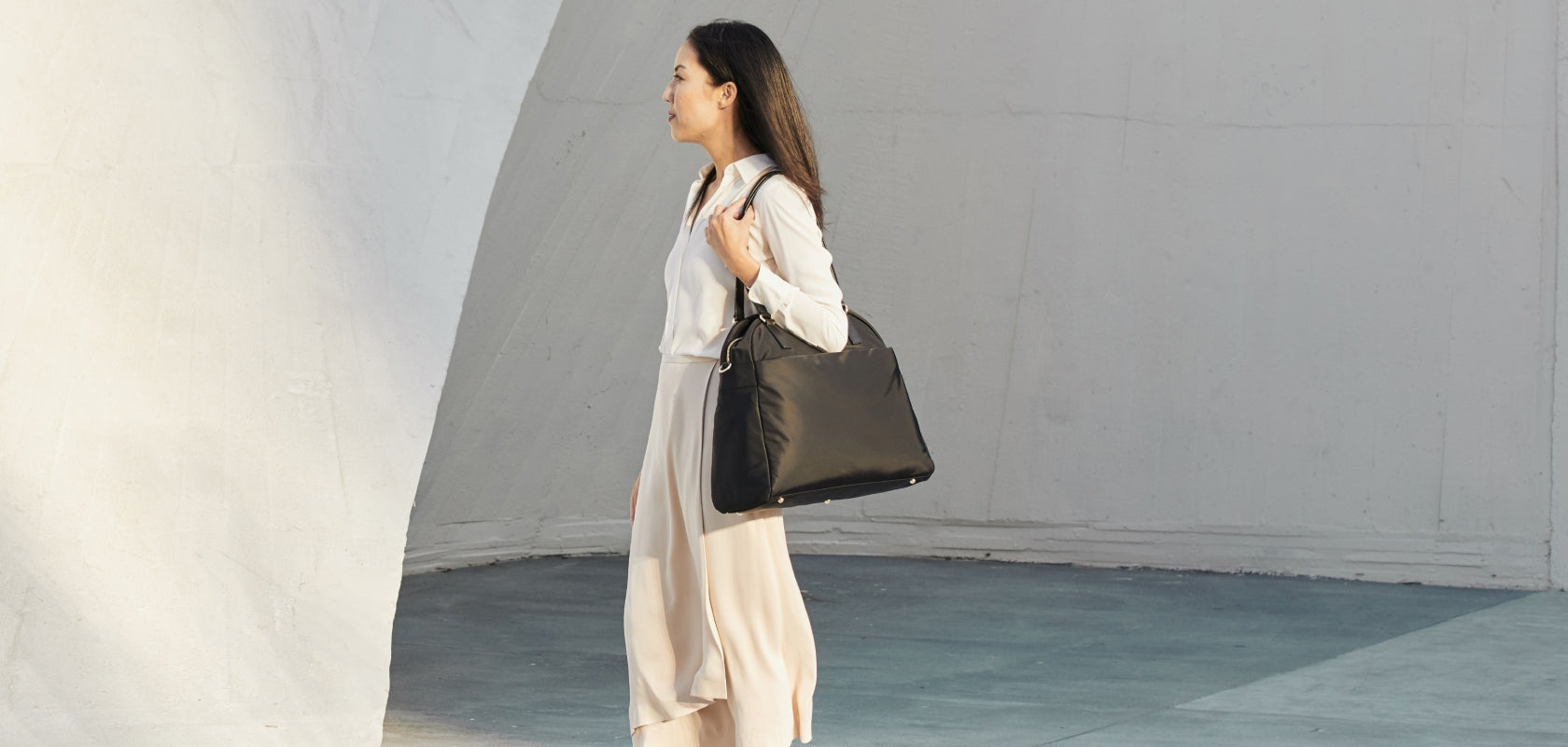 Lightweight, fine-weave, water-resistant nylon provides a sturdy and chic exterior.