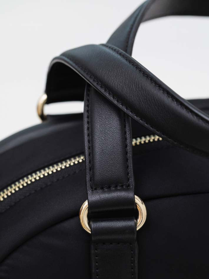 A fine-weave and premium quality water-resistant nylon provides a sturdy and chic exterior.